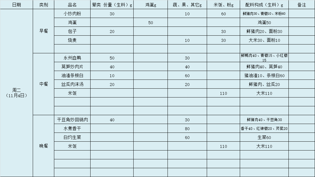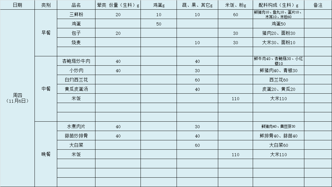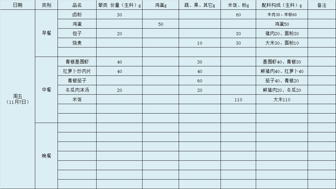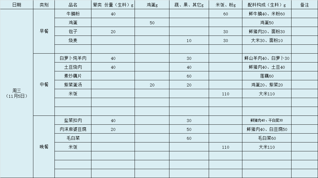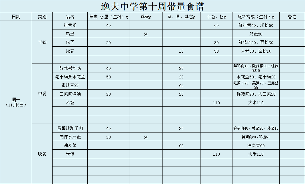 第10周带量食谱