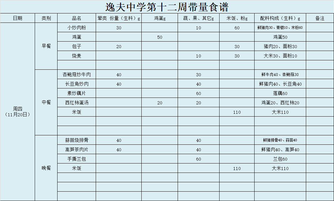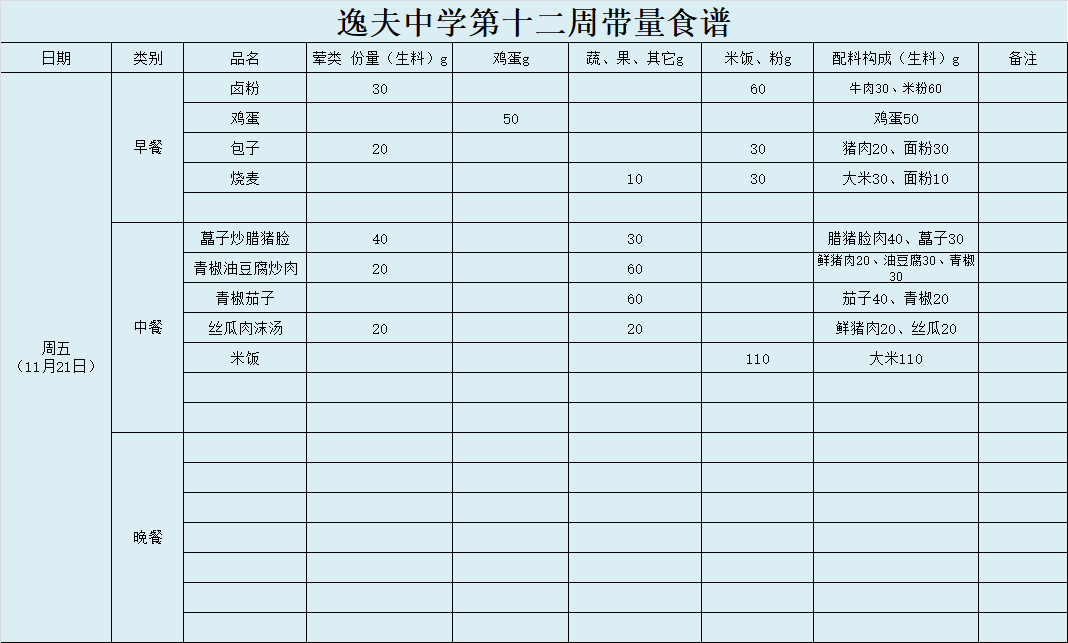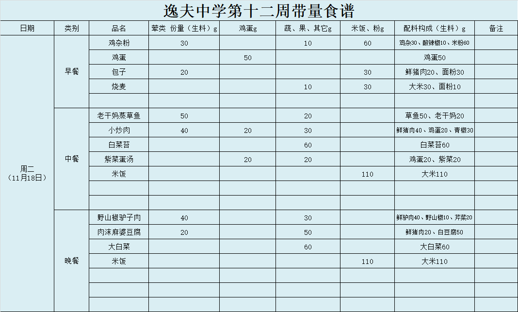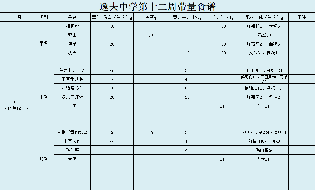 第12周带量食谱