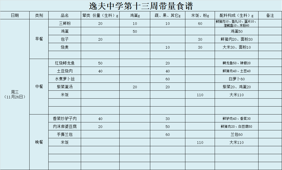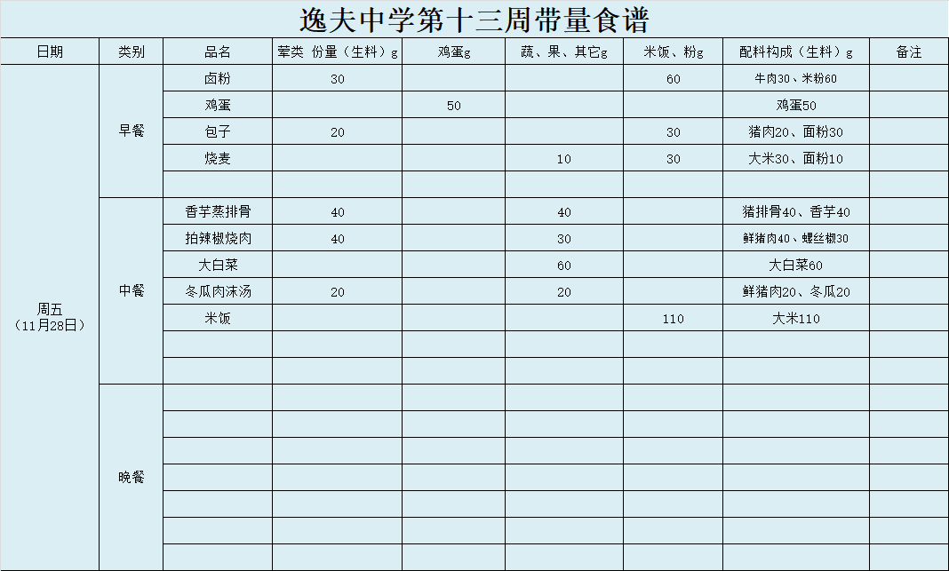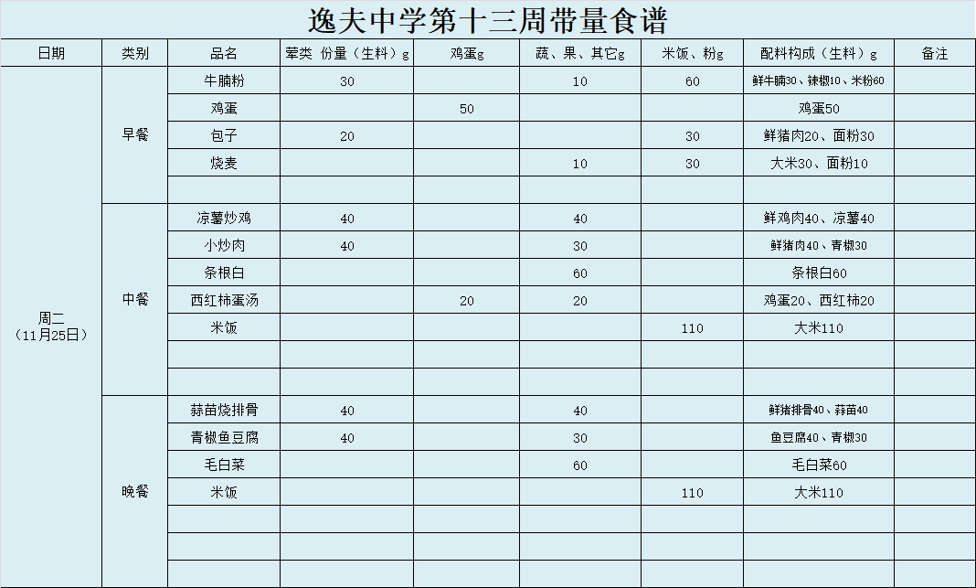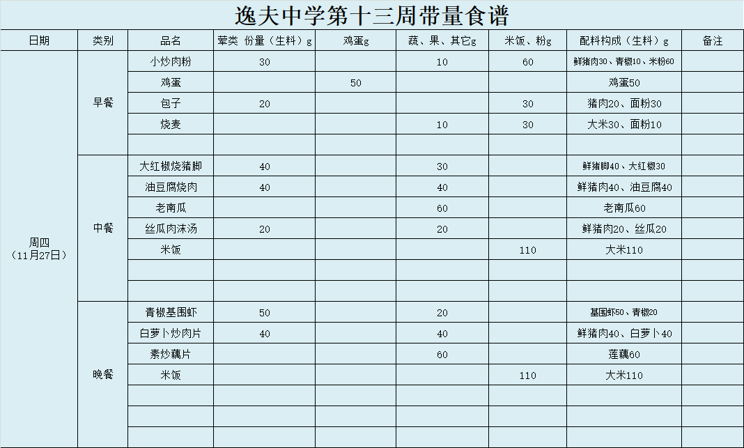 下一条:衡阳市逸夫中学第十四周带量食谱