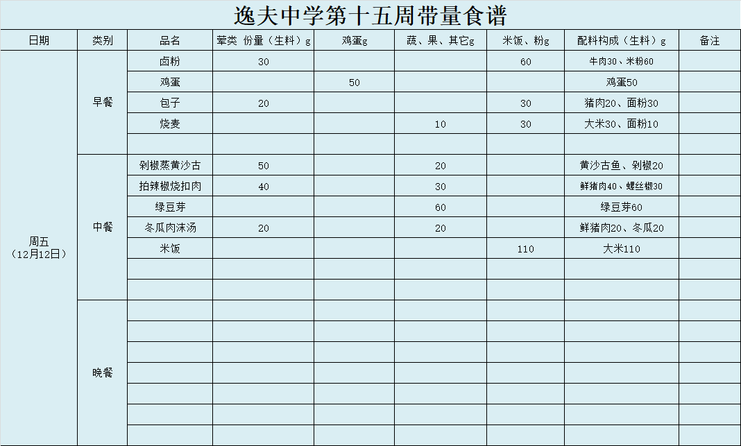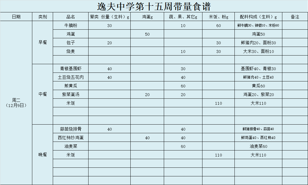 第十五周带量食谱来啦!营养均衡,美味可口,让同学们吃得健康又满足。快来一起看看吧!
