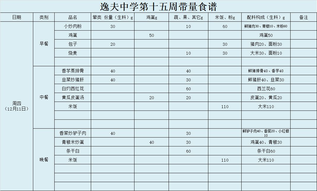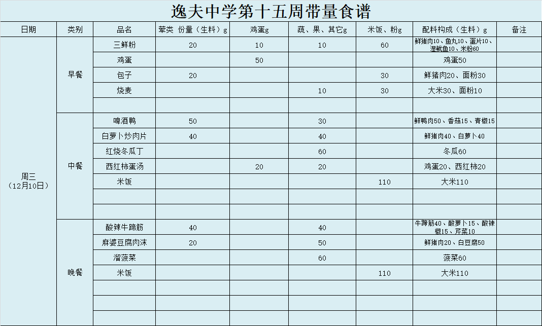 上一条:衡阳市逸夫中学第十四周带量食谱