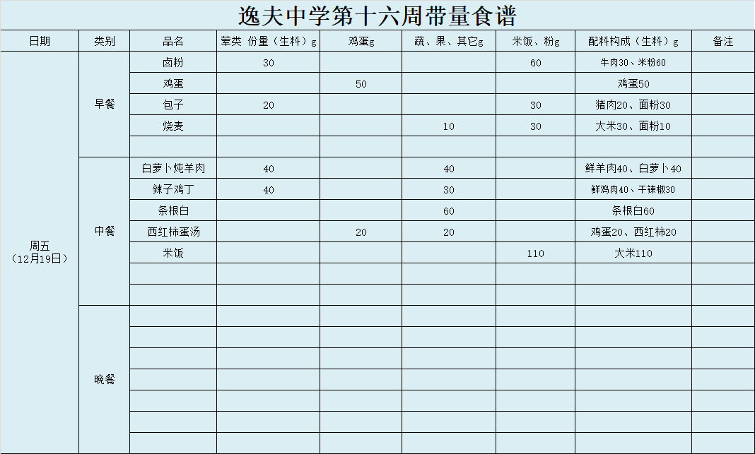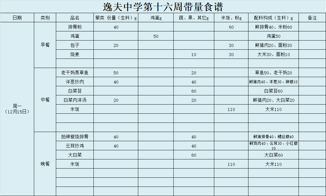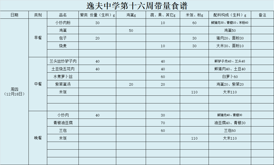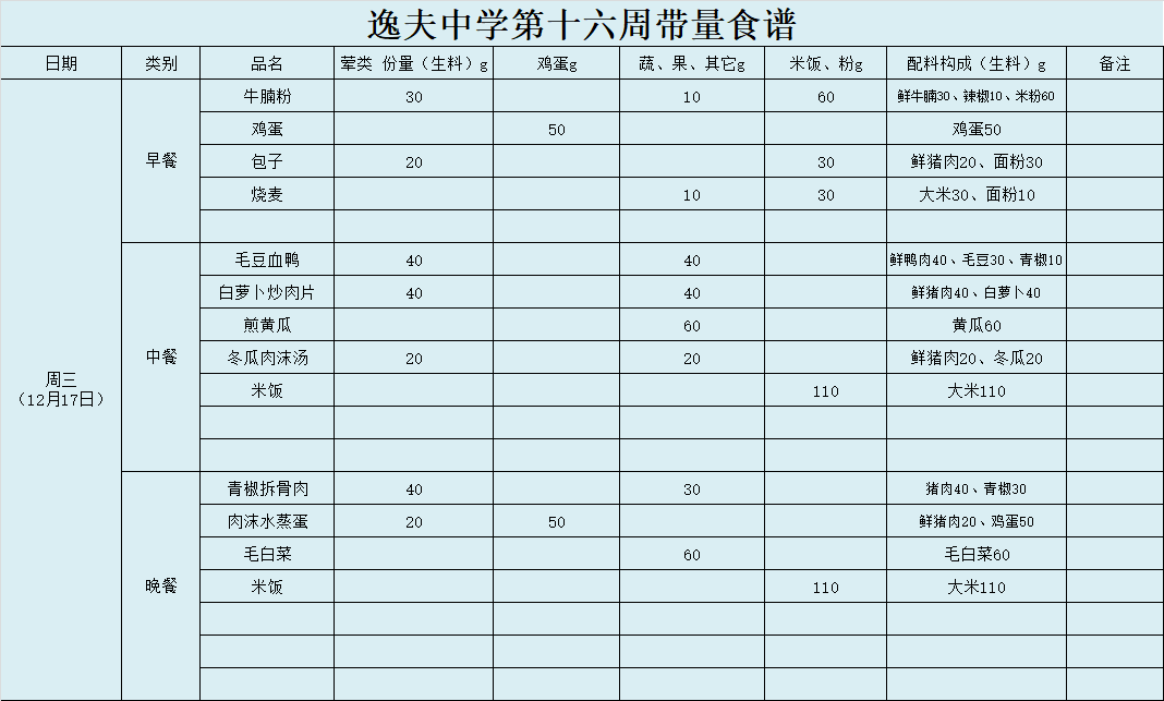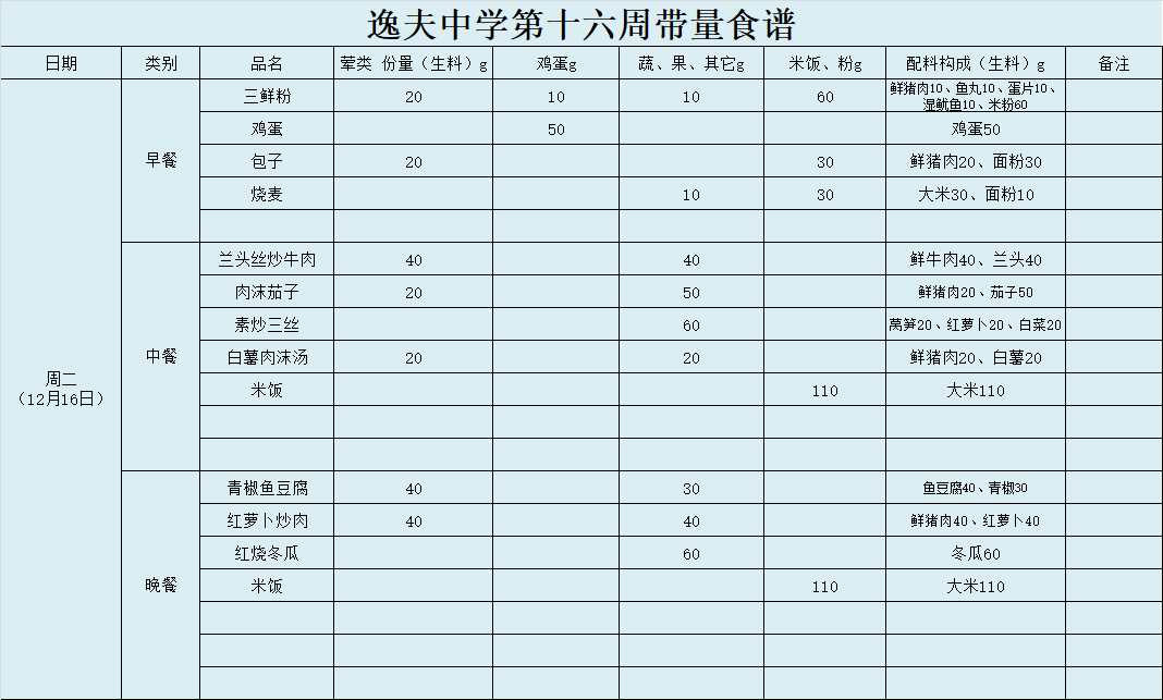 下一条:衡阳市逸夫中学第十七周带量食谱