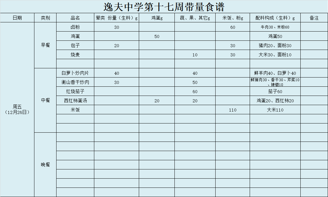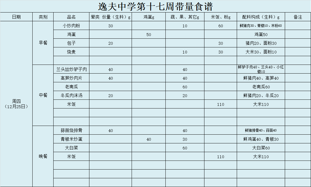 下一条:衡阳市逸夫中学第十八周带量食谱