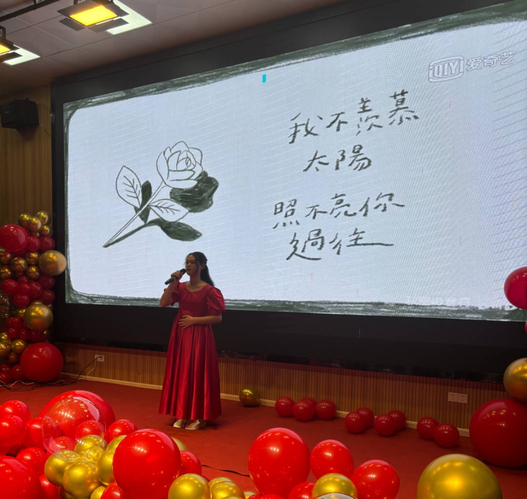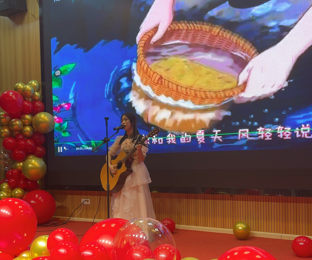 现场气氛热烈,观众们的掌声和欢呼声此起彼伏。特别是吴瑞发副校长的献唱环节,将气氛推向了高潮。他饱含深情的歌声,为这场音乐盛宴增添了浓墨重彩的一笔,也让同学们感受到了校园文化的温暖与力量。