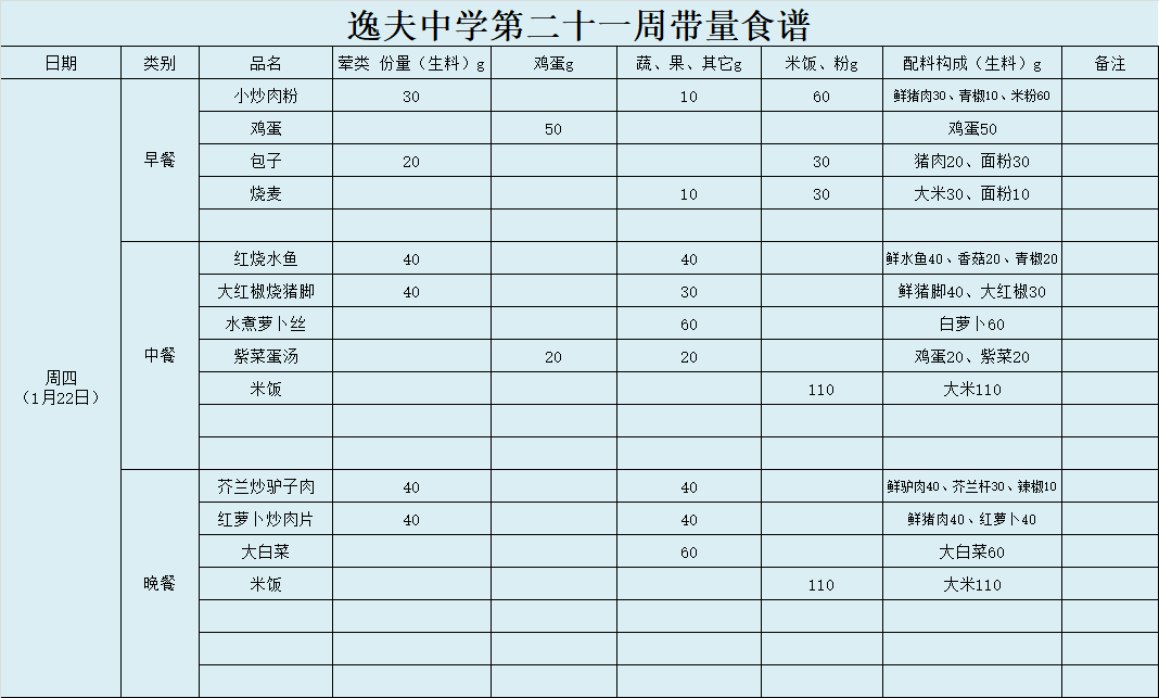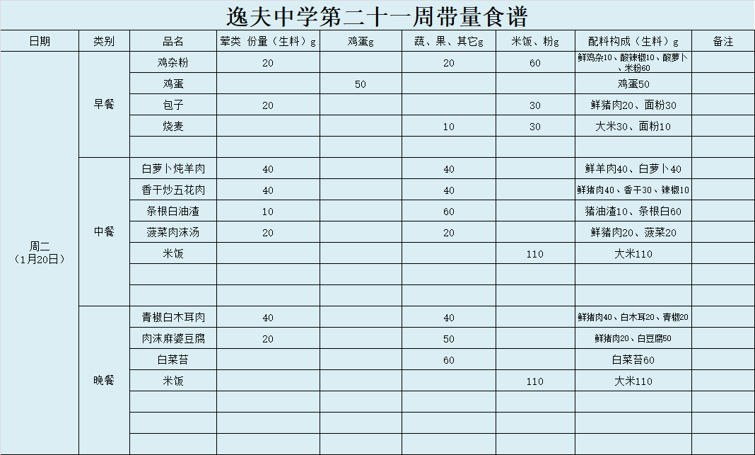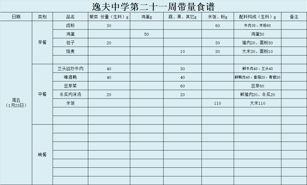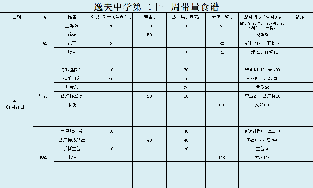 第21周带量食谱