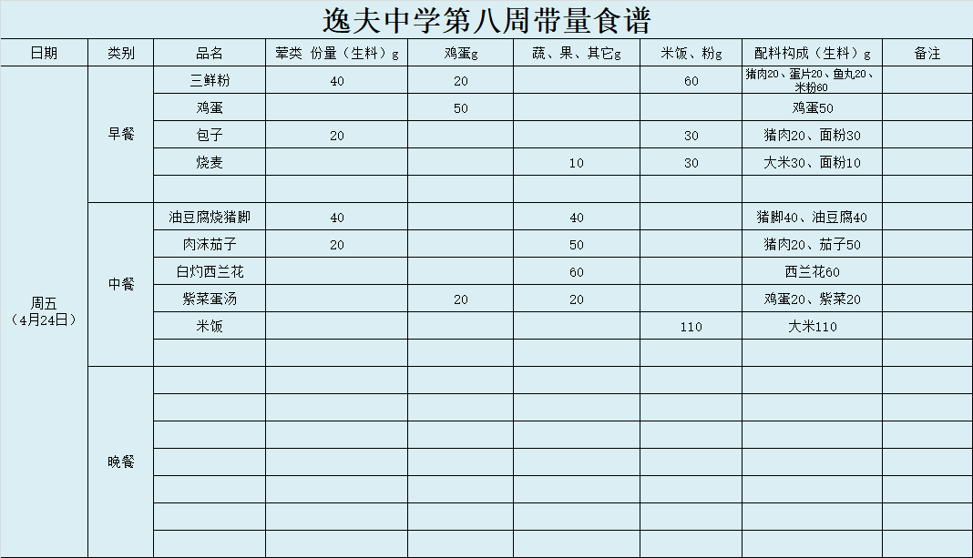 本周营养食谱已更新,精心选材、合理配比,为孩子们每日活力加满能量。